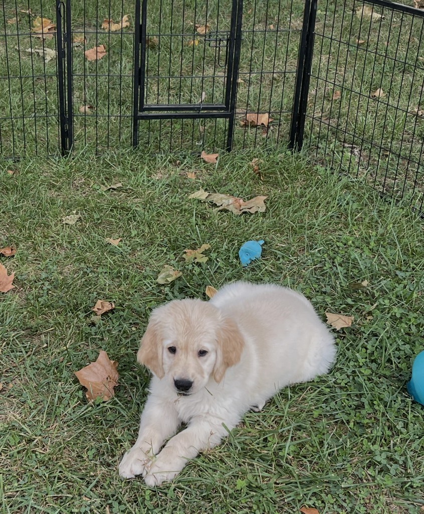 Fall is the perfect time to get a Golden! They love the outdoors, chasing leaves, going on walks and of course don’t forget the treats!